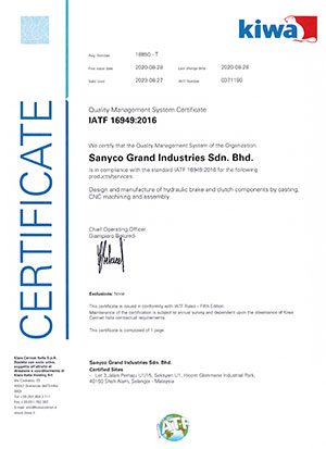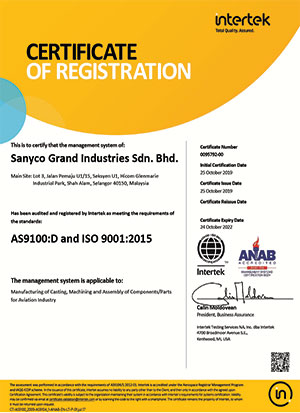 As a company with ISO9001:2000, IATF 16949 and AS9100 certification, Sanyco Grand offers to her customers reliable products with one-stop-solution centre from design until finished product.